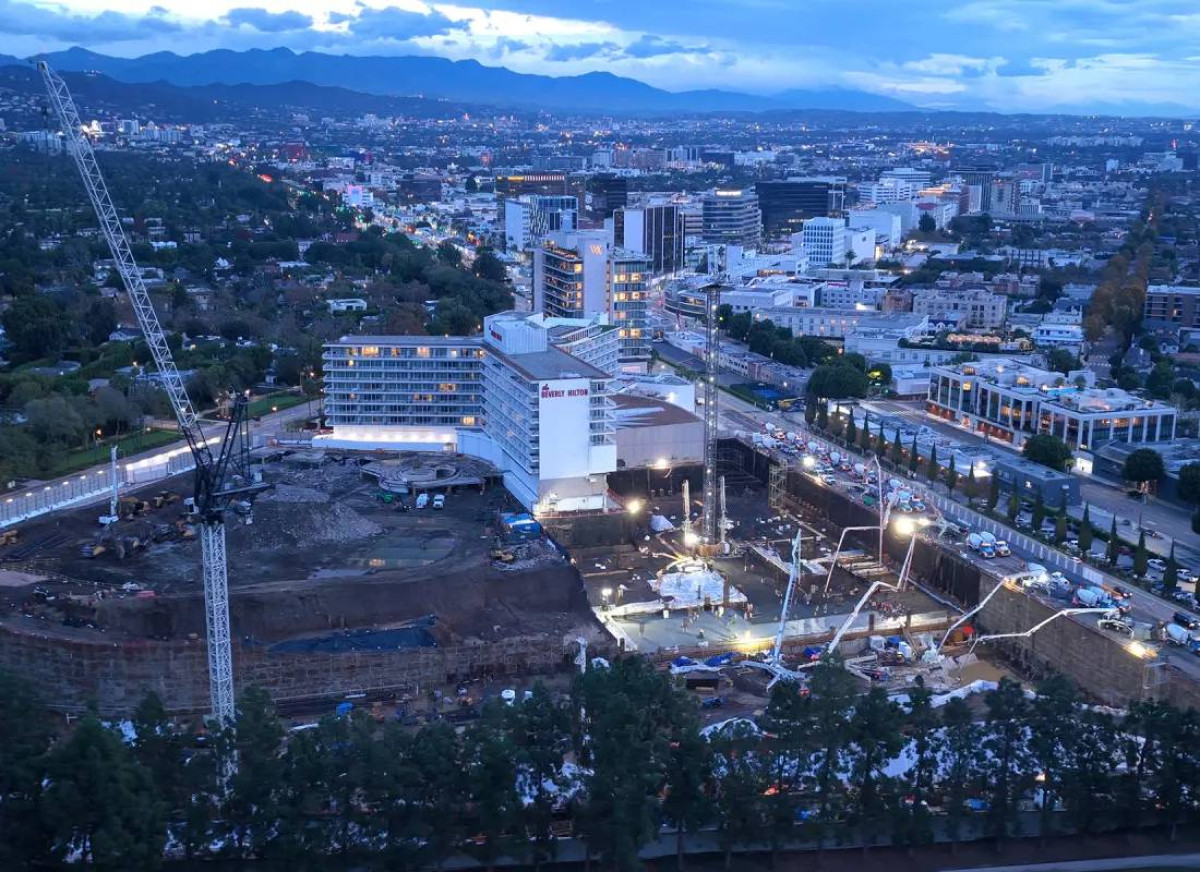 פרויקט נדל"ן עצום בהיקף של כ-10 מיליארד דולר בבוורלי הילס עבר בסוף השבוע אבן דרך משמעותית, עם תחילת הבנייה האנכית של שני המגדלים שצפויים להיות הגבוהים ביותר בעיר. ביום שישי הושלמה יציקה רצופה של 3,800 יארד מעוקב של בטון – שוות ערך לכ־41 אלף מריצות עגלות יד. זוהי הראשונה מבין יציקות רבות שיבוצעו במהלך השנה הקרובה, לדברי חברת הפיתוח קיין אינטרנשיונל.